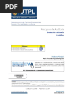 Fonseca, R. (1989): Auditora Interna, Quito, Editoral Edi Abaco Cia Ltda. A ms de ser un texto en el cual se abordan los temas de una manera clara y sencilla, en el captulo II usted encontrar lo relacionado sobre la normatividad de los auditores interno para el desarrollo profesional de los despachos contables. Andrade, R, (1998): Auditora Teora Bsica un Enfoque Moderno, Loja - Ecuador, Editorial Universidad Tcnica Particular de Loja. Es un compedio con un enfoque moderno, que contiene toda la teora bsica para la ejecucin prctica de la auditora. En la unidad 4 Herramientas de auditora, consta lo relacionado con la evidencia de auditora, aplicaciones de tcnicas y procedimientos para su obtencin importancia del muestreo y los papeles de trabajo. Santillana, J. (2002): Auditora Interna Integral, Administrativa, operacional y financiera, Mxico, Editorial Thomson Este texto proporciona al estudiante los conocimientos necesarios para conocer y entender la auditora de manera integral, su origen y su evolucin, los organismos que la regulan, su estructura y ubicacin en la organizacin y los aspectos administrativos. Santillana, J. (2004): Fundamentos de Auditora, Mxico, Editorial Thomson. Este libro concentra su estudio en los tipos de auditora ms comunes, la auditora de estados financieros, la normatividad que se aplica a este tipo de auditora y su planeacin tcnica y administrativa. Tllez, B. (2004): Auditora un enfoque prctico, Mxico, Editorial Thomson. Este libro tiene como objetivo exponer la auditora con un enfoque eminentemente prctico, as como la actuacin del contador pblico al desarrollar el examen de estados financieros, tambin le ser muy til en los temas relacionados con la planeacin y supervisin de la auditora, importancia de los papeles de trabajo, aplicacin de los programas de auditora, informes y dictmenes del contador pblico. Adicionalmente a los textos seleccionados como complementarios, se incluyen como fuente de consulta los siguientes documentos: CONTRALORA GENERAL DEL ESTADO, (2000): Curso de Auditora Financiera, Manual del Participante. ILACIF (Manual Latinoamericano de Auditora Profesional en el sector Pblico) Normas Ecuatorianas de Auditora