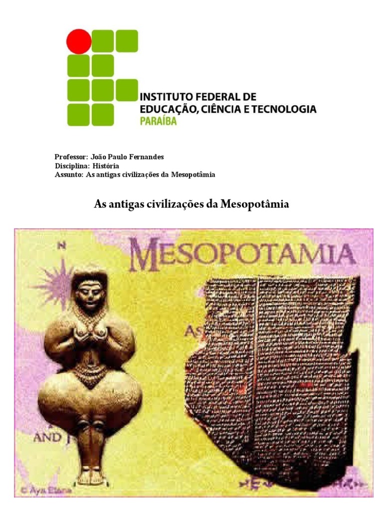 Professor: Joo Paulo Fernandes Disciplina: Histria Assunto: As antigas civilizaes da Mesopotmia