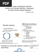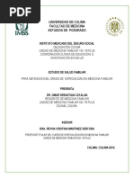 LA FAMILIA COMO OBJETO DE ESTUDIO DEL MDICO FAMILIAR La familia, con su dinmica relacional entre los miembros, posibilita la cooperacin mutua, la flexibilidad de los roles en la tareas, el apoyo entre las contingencias y exigencias de la vida cotidiana llena de aceptacin, amor y armona, este funcionamiento garantiza la estabilidad y la seguridad necesarias para el ser humano, siempre que el sistema familiar sea funcional, cuando el grupo familiar que convive junto pierde la capacidad funcional o no logra establecerla se susicita la disfuncionabilidad, reponsable de tantas afecciones de salud de diferentes magnitudes en cualquier perodo de la vida , el funcionamiento familiar influye en la aparicin de eenfermedades