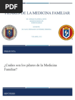 La medicina familiar est construida sobre lel entendimiento mutuo, confianza y planes conjuntos para mantener la salud y tratar sus enfermedades, provee continuidad en la atencin, como responsable de los individuos de una poblacin asignada ,esto es posible por cuatro aspectos fundamentales: cronolgico, geogrfico, interdisciplinario e interpersonal.( ) Profesor Dr. Julio Ceitlin Lo cronolgico se refiere a la historia natural de la enfermedad y es el modo en el cual los mdicos de familia usan visitas repetidas a travs del tiempo como instrumento diagnstico y tratamiento.( )ceitlin La dimensin geogrfica es el lugar donde tiene lugar la atencin mdica, casa, consultorio u hospital.( ) ceitlin Lo interdisciplinario es la atencin que atraviesa los sistemas orgnicos tradicionalesolas disciplinas clnicas determinadas por las especialidades, el mdico de familia puede manejar diferentes enfermedades y apoyar al paciente con otros problemas de vida.( ) ceitlin