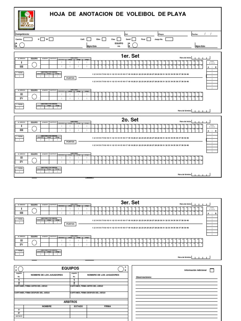 HOJA DE ANOTACION DE VOLEIBOL DE PLAYA