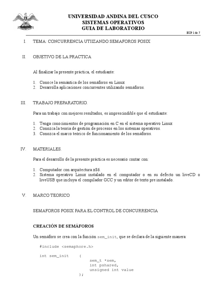 TRABAJO PREPARATORIO. Para un trabajo con mejores resultados, es imprescindible que el estudiante: 1. Tenga conocimientos de programacin en C en el sistema operativo Linux 2. Conozca la teora de gestin de procesos en los sistemas operativos. 3. Conozca el marco terico de funcionamiento de los semforos.