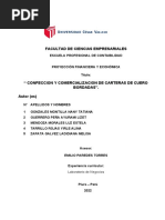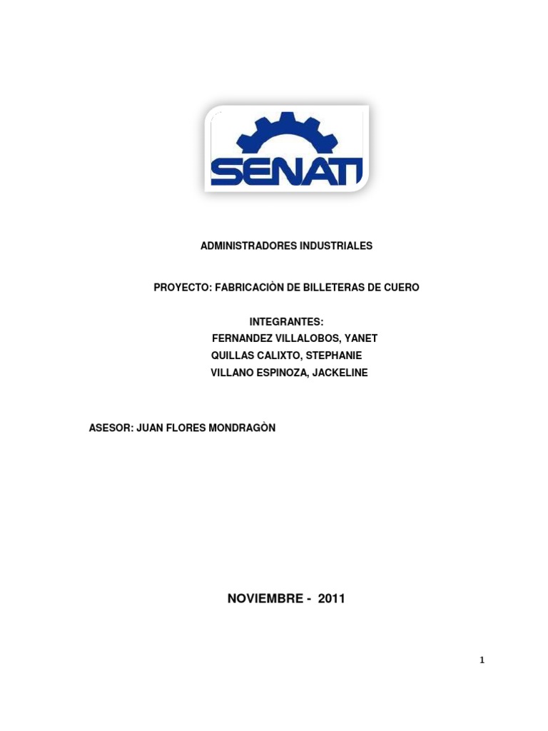 El negocio propuesto es nacional dedicada a la fabricacin de billeteras de cuero. En el transcurso del desarrollo de este Proyecto de Inversin, se realiz un anlisisde lo que concierne a la creacin y puesta en marcha de una empresacomercial dedicada a la fabricacin de billeteras , para damas comprendidos en la edad entre 18 a 49 aos como referencia del Distrito de La Molina.
