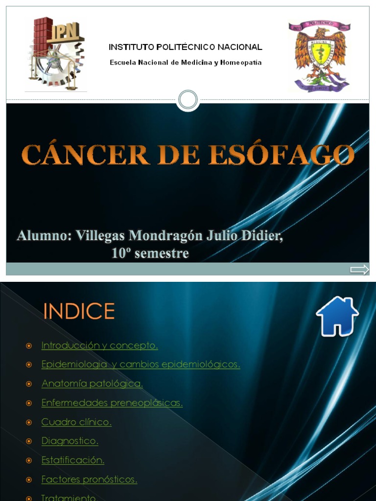 Los tumores del esfago tienen una particular tendencia a la diseminacin en el eje longitudinal del rgano y es bien conocida la posibilidad de hallar metstasis resurgentes en la mucosa a bastante distancia del tumor primitivo.