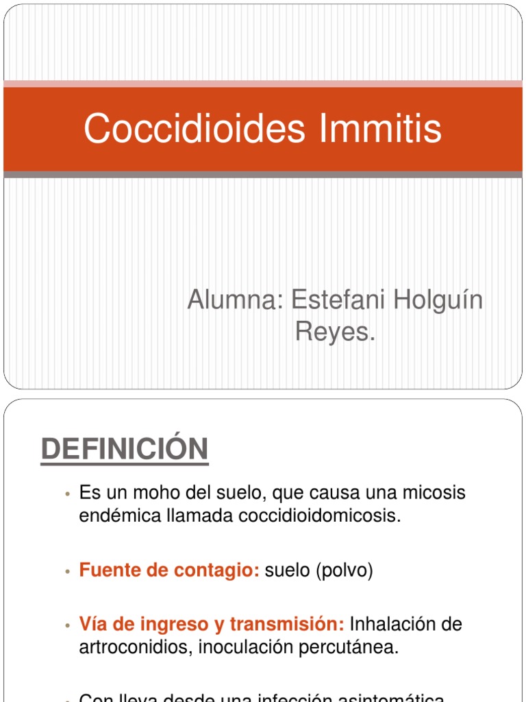 Familia: Onygenaceae Gnero: Coccidioides Especie: Immitis