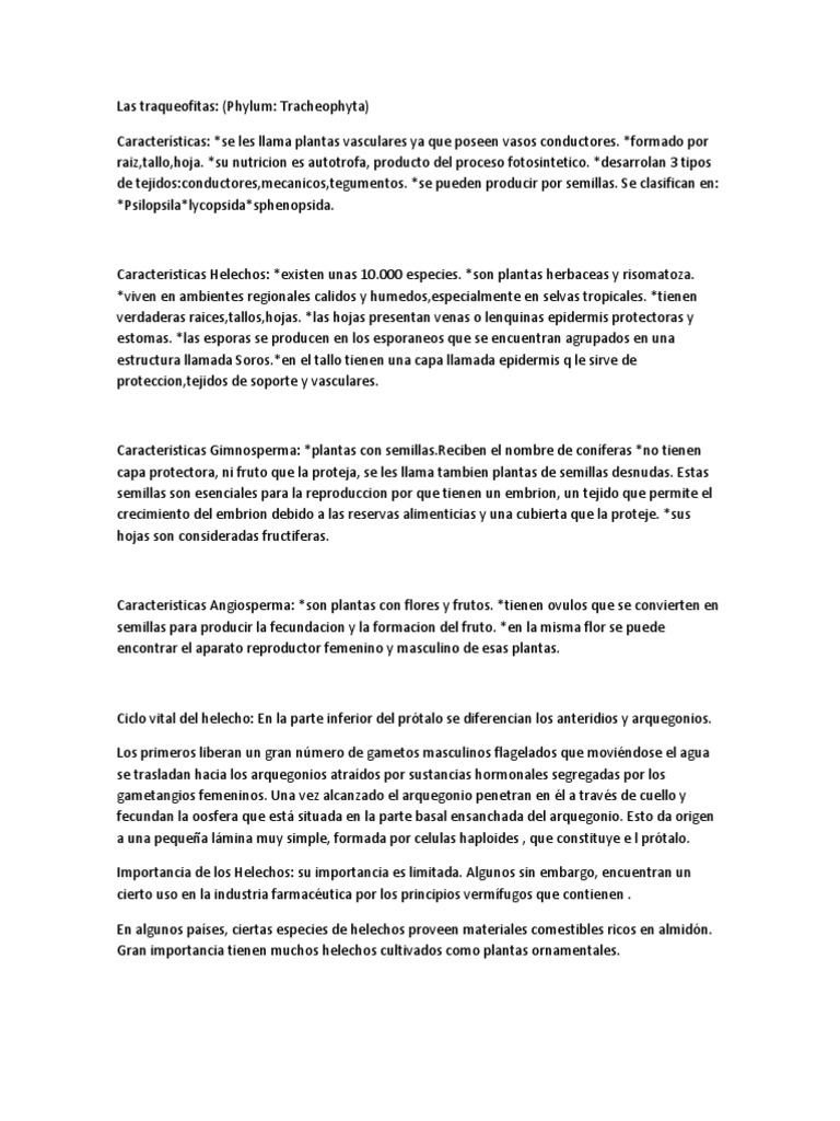 Las traqueofitas: (Phylum: Tracheophyta) Caractersticas: *se les llama plantas vasculares ya que poseen vasos conductores.