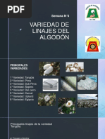 2.- Objetivos: Evaluar y calculas los caracteres productivos del algodn tanguis. Determinar la calidad de la fibra del algodn tanguis. 3.- Revisin bibliografica: Calidad de fibra: El producto agropecuario de esta zona pone extrema dedicacin y especial cuidado en la eleccin de la semilla, para luego obtener un fibra de buena calidad. Para determinar esa buena calidad se busca la relacin de la propiedades de la fibra con las de hilado resultante. Sobre esa relacin inciden factores de produccin y desmote ( variedad, ambiente prctica culturales, cosecha e industrializacin), propiedades, resistencia, alargamiento, grado, proceso textil ( mezclado, preparacin, velocidad de cardado, doblados, estiramientos, torsin de las mechas, estiramiento de hilatura, ttulo y torsin de hilado), eficiencia de hilatura ( rotura de cabos) y propiedades del hilado ( resistencia, alargamiento, uniformidad, apariencia).