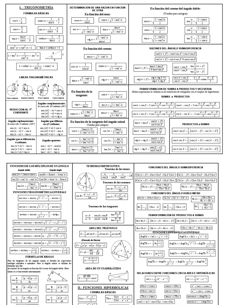 cos 2α = cos α − sen α cos 3α = 4 cos α − 3 cosα Ch ( α + β ) = Ch α Ch β + Sh β S h α Ch ( α − β ) = Ch α Ch β − Sh α Sh β