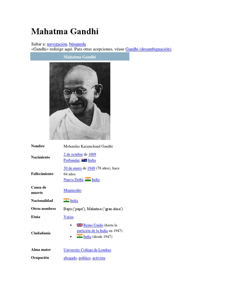 Saltar a: navegacin, bsqueda Gandhi redirige aqu. Para otras acepciones, vase Gandhi (desambiguacin).