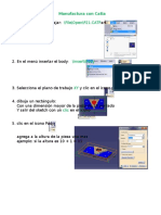 WORKBENCH: En CATIA V5, el contexto de trabajo con mens especializados para desarrollar una determinada tarea o fase de concepcin del producto. SCKETCH: Es el Workbench de trabajo en dos dimensiones, a partir del que se extraen los perfiles y curvas generatrices de la figura tridimensional. PAD (extrusin o relleno). Creacin de un slido a partir de un perfil (profile, obtenido con el Sketcher) plano que se estira a lo largo de un eje perpendicular. POCKET (vaciado). Operacin anloga al PAD, pero el efecto es la retirada de material o vaciado.