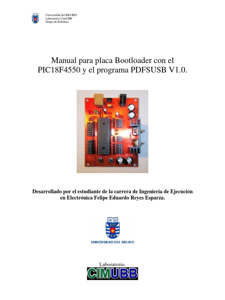 La implementacin de un sistema basado en un bootloader ofrece grandes y rpidas prestaciones a la hora de llevar a cado un proyecto relacionado con los microcontroladores. El proyecto propuesto por este documento consiste en el desarrollo e implementacin de una tarjeta de entrenamiento, como se indica en la figura 2, con el microcontrolador PIC18F4550, para ser utilizada con la interfaz de usuario PDFSUSB ofrecido de forma gratuita por el fabricante MICROCHIP. Se escogi el uC PIC18F4550 debido a la gran cantidad de informacin dedicada a el y dada la particularidad de que posee un puerto USB, puerto con el cual se realiza la comunicacin con la aplicacin PDFSUSB.