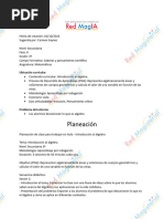 Plan de clase (1/2) Escuela: _________________________________________ Fecha: _____________ Profesor (a): ____________________________________________________________ Curso: Matemticas 9 Eje temtico: MI Contenido: