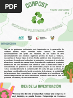OBJETIVOS: 1.- Antes de hacer el diseo del contenedor de la composta, necesitamos la materia prima, para esto se necesitarn contenedores para depositar los residuos orgnicos que en este caso es la materia prima de la composta, en este caso ya sea que se diseen y se produzcan o simplemente se compren contenedores con la leyenda de basura orgnica con una breve explicacin de cual es este tipo de basura o con imgenes. 2.- Una vez obtenida la metera prima se proceder a hacer 4 hoyos de 2 metros por un metro y tendr una profundidad aproximadamente de 1 metro, de cierto modo una vez hecho eso se tiene la localizacin de la composta, otra manera es implementar el diseo de un contenedor de madera o simplemente con el hoyo, esto queda aun en consideracin 3.- Una vez recolectada la materia orgnica producida en la escuela, se depositar una capa de aserrn en el fondo con la finalidad de evitar malos olores qu puedan afectar las zonas aledaas a su posicin () y para que se conserve la humedad. 4.- Una vez puesta la capa de aserrn se pondrn los productos orgnicos recolectados en el ITSAV Campus Tlalixcoyan, como lo son residuos de frutas, verdura sobras de alimentos trados de casa o comprados en el campus o sus alrededores u otros productos que puedan llegarse a depositarse en los separadores de basura. En caso de estar muy seca se agregar un poco de agua o la cantidad necesaria para que se conserve la humedad, esto depender de la cantidad y de que tan seca este.