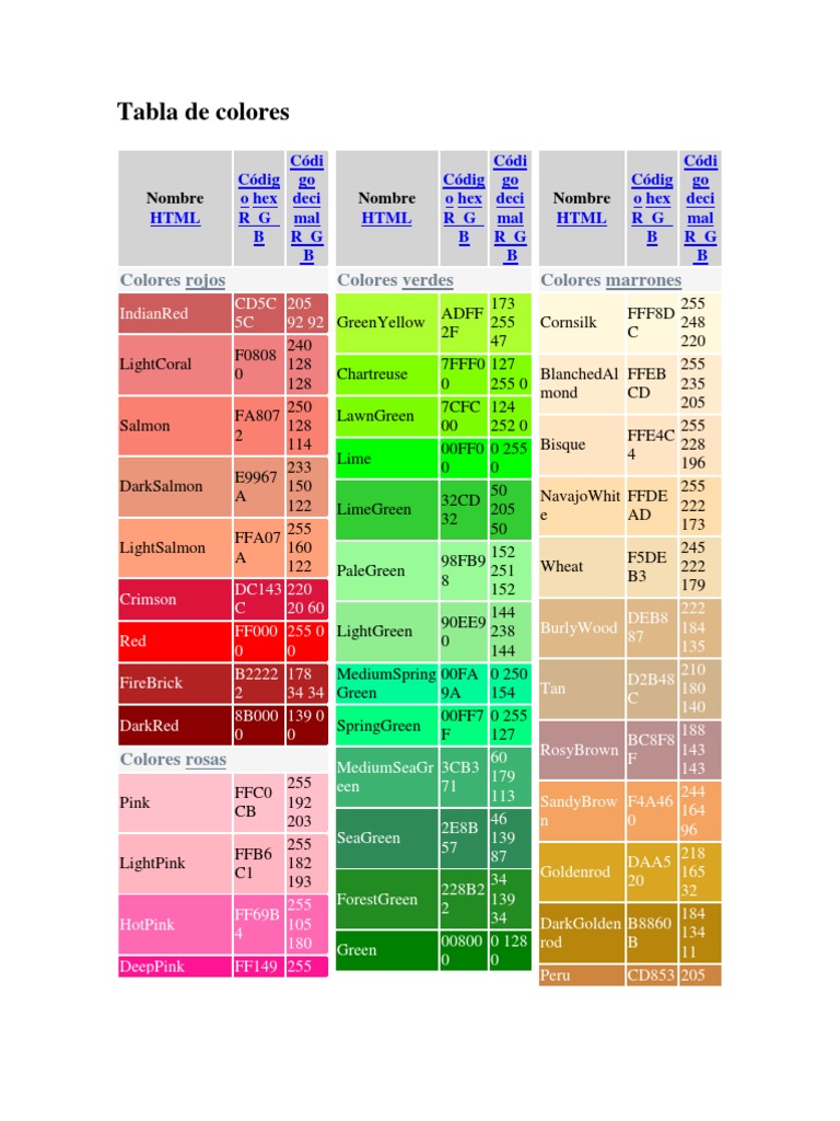 Tabla de colores