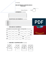 6. Reconocimiento de figuras geomtricas La capacidad de reconocer y discriminar estmulos es esencial para el desarrollo de las tareas matemticas. Pretende evaluar tambin la habilidad perceptivo visual del nio y reconocimiento de formas geomtricas bsicas. Supone vocabulario geomtrico y asociacin de conceptos geomtricos con sus smbolos grficos. Evala: el cuadrado, el tringulo, el rectngulo y el concepto de mitad. 7. Reconocimiento y reproduccin de nmeros Implica el manejo del sistema numeral: los nombres de los dgitos y el signo que los representa. Evala la habilidad del nio para: o identificar el nmero que le es nombrado. o reproducir un smbolo que le es nombrado. o habilidad para realizar operaciones simples (identificar la cantidad numrica y reproducir la serie agregando o quitando elementos) 8. Cardinalidad El nmero es una propiedad del conjunto que indica su magnitud. Que el nio cuente o reconozca dgitos no implica que el nio posea la idea de nmero (implica pensamiento lgico). Algunos autores postulan que la etapa prenumrica ira acompaada de pensamiento prelgico. Evala la capacidad para contar y percibir que los objetos se mantienen idnticos, pese a los cambios en la distribucin. Debe llegar a una comprensin del nmero de tipo operativa e invariada. Consiste en 10 tem en que debe: marcar la cantidad de elementos correspondientes a un nmero dado verbalmente. dibujar la cantidad de elementos correspondientes al cardinal dado. evaluar la habilidad para dibujar el nmero correspondiente a una determinada cantidad de elementos.