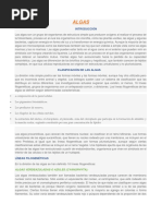 Un 5% de los alginatos se usa en la industria farmacutica y de cosmticos. Son bien tolerados en contacto con la piel, refrescantes, lubricantes y de bajo contenido en lpidos. Adems se incorporan en jabones, champs y cremas de afeitar como suavizantes y estabilizantes de las espumas y como hidratantes del cabello. Otros usos de los alginatos son soldaduras, vendajes bioactivos, moldes dentales, dispensador de herbicidas, etc. Las algas pardas son tambin fuente de vitaminas y minerales y se utilizan como fertilizantes. Existen algunos indicios acerca de la accin antitumoral que poseen las algas pardas marinas, se han investigado los efectos que producen los extractos de algas sobre varios tipos de tejidos tumorales. Aplicados a ratones, se han obtenido resultados positivos con los extractos provenientes de Macrocystis pyrifera. Son conocidos los efectos beneficiosos de los extractos de algas verdes, rojas y pardas para bajar el colesterol. Tambin se han obtenido resultados positivos para estabilizar la presin sangunea y se ha verificado la actividad antibitica y antiviral. Rodofceas o algas rojas: Tipos y Usos Son ricas en agar, agaroides y carragenina, los gneros ms explotados son: Digenia, Gracilaria, Hypnea y [Link] agar es un polisacrido muy complejo, que en realidad es la mezcla de dos polisacridos, agarosa y agaropectina; tiene diversos usos comerciales, pero el ms conocido de todos ellos, es el de medio de cultivo, utilizado en la microbiologa como porque tiene la propiedad de no poder ser digerido ni atacado por los microorganismos cultivados; es el ingrediente principal en la elaboracin de conservas de carne y pescado, evitando el desagradable sabor a lata.