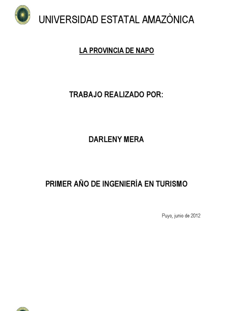 Asentada en el oriente ecuatoriano, la provincia de Napo se levanta orgullosa y pujante. Rodeada de volcanes cascadas, historia y leyenda. Su manto de belleza cubre a su tierra frtil a sus habitantes y a su cultura ancestral.