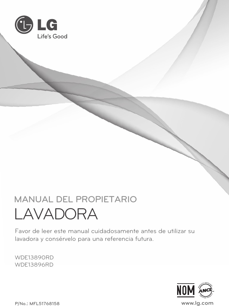 Favor de leer este manual cuidadosamente antes de utilizar su lavadora y consrvelo para una referencia futura.
