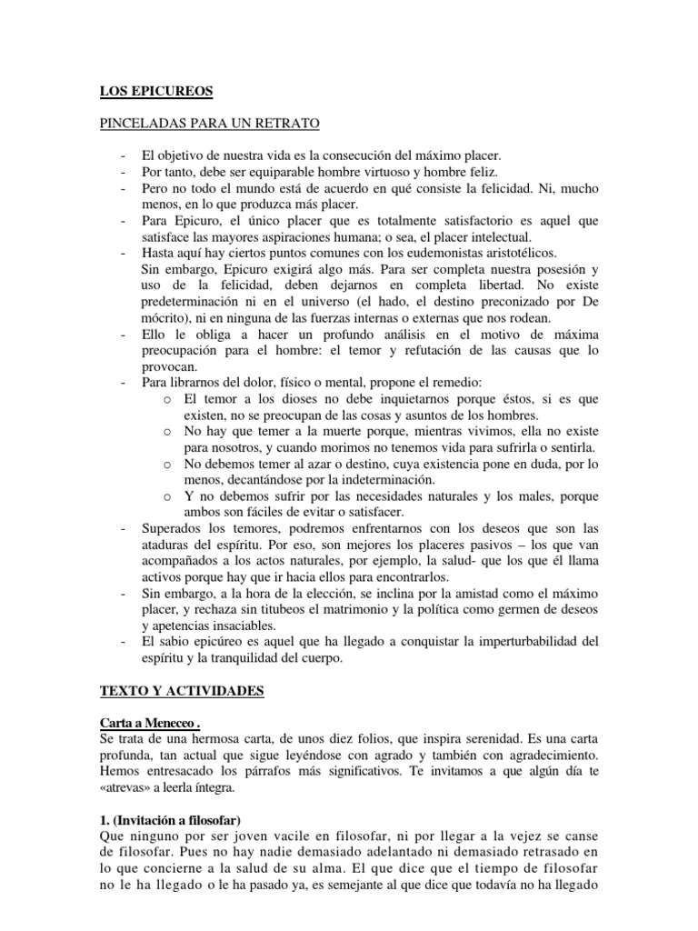 Epicuro: «Carta a Meneceo y Máximas capitales», pp. 24-35,