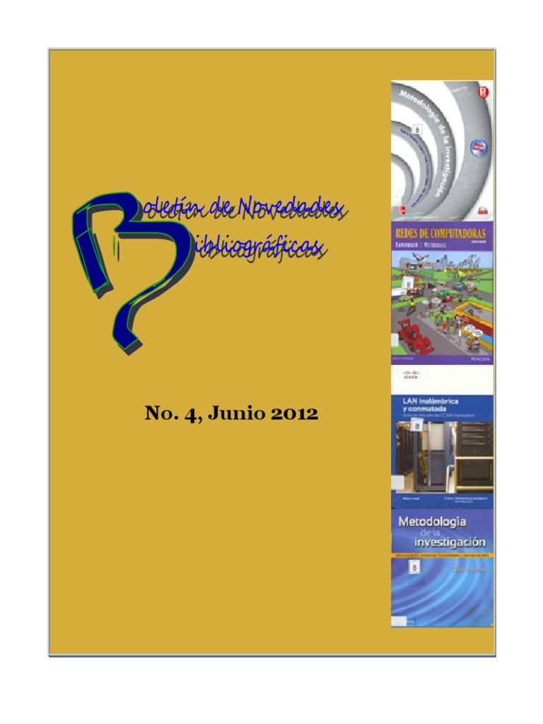 Ttulo: Redes de computadoras. Autores: Tanenbaum, Andrew S. ; Wetherall, David J., Edicin: 5a. ed. Editorial: Pearson, Ciudad: Mxico, Ao: 2012 ISBN:978-607-32-0817-8, Ejemplares: 6 Ttulo: Lan inalmbrica y conmutada: gua de estudio de CCNA exploration. Autores: Lewis, Wayne, Edicin: 1a. ed., Editorial: Cisco Ciudad: Madrid, Ao: 2009, ISBN:9788483224731, Ejemplares: 6 Ttulo: Conceptos y protocolos de enrutamiento: gua de estudio de CCNA, exploration. Autores: Graziani, Rick ; Johnson, Allan., Edicin: 1a. ed. Editorial: Cisco, Ciudad: Madrid, Ao: 2008 ISBN:978-84-8322-472-4, Ejemplares: 6 Ttulo: Acceso a la WAN: gua de estudio de CCNA exploration. Autores: Vachon, Bob ; Graziani, Rick., Edicin: 1a. ed. Editorial: Pearson, Ciudad: Madrid, Ao: 2009 ISBN:978-84-8322-474-8, Ejemplares: 6 Ttulo: Ingeniera de software. Autores: Sommerville, Ian Edicin: 9a. ed., Editorial: Pearson Educacin, Ciudad: Mxico Ao: 2011, ISBN:978-607-32-0603-7, Ejemplares: 6 Ttulo: Programacin con Visual Basic 2008. Autores: Patrick, Tim., Edicin: 1a. ed., Editorial: McGraw-Hill, Ciudad: Mxico, Ao: 2010, ISBN:978-607-15-0248-3, Ejemplares: 6 Ttulo: Java como programar. Autores: Deitel, P.J. ; Deitel, H.M., Edicin: 7a. ed., Editorial: Pearson Ciudad: Mxico, Ao: 2008, ISBN:978-970-26-1190-5, Ejemplares: 6