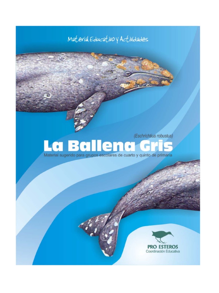 los humedales de la pennsula de Baja California en su reproduccin. Este cuaderno incluye informacin acerca de la vida, migracin y reproduccin de este mamfero, as como una serie de actividades de apoyo relacionadas con los temas tratados. Pro Esteros es una organizacin ciudadana, dedicada desde 1988 a la proteccin de los humedales costeros de la pennsula de Baja California. Si desea obtener mayor informacin o realizar algn comentario, por favor comunquese a la Coordinacin Educativa de Pro Esteros: