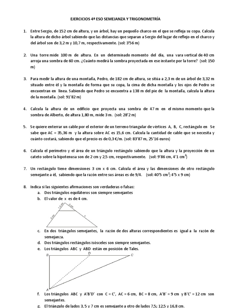 Ejercicios 4º Eso Semejanza y Trigonometría