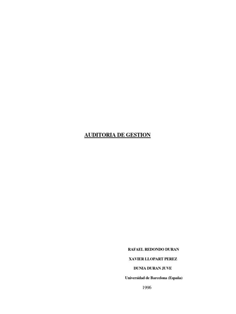 PRADO, J.M. y GONZALEZ, M.I. Hacia una formulacin de la auditora no financiera: La auditora de gestin. Madrid: Revista tcnica del Instituto de Censores Jurados de Cuentas de Espaa, 1996.