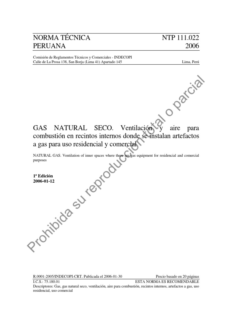 oficializado como Norma Tcnica Peruana NTP 111.022:2006 GAS NATURAL