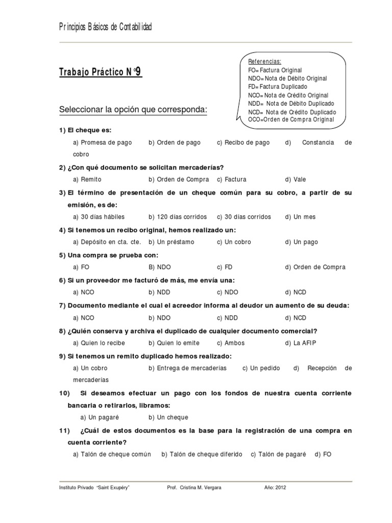 1) El cheque es: a) Promesa de pago cobro 2) Con qu documento se solicitan mercaderas? a) Remito b) Orden de Compra c) Factura b) Orden de pago