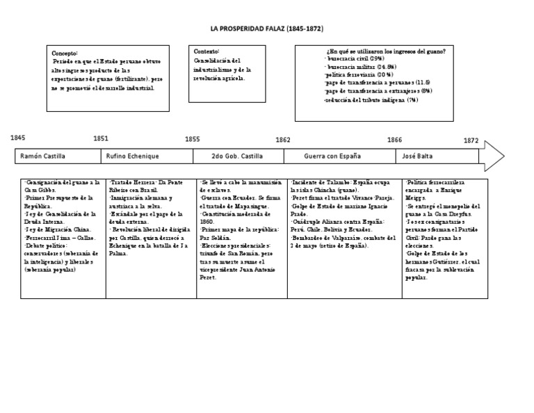 Concepto: Periodo en que el Estado peruano obtuvo altos ingresos producto de las exportaciones de guano (fertilizante), pero no se promovi el desarrollo industrial. Contexto: Consolidacin del industrialismo y de la revolucin agrcola. En qu se utilizaron los ingresos del guano? - burocracia civil (29%) - burocracia militar (24.5%) -poltica ferroviaria (20 %) -pago de transferencia a peruanos (11.5) -pago de transferencia a extranjeros (8%) -reduccin del tributo indgena (7%)