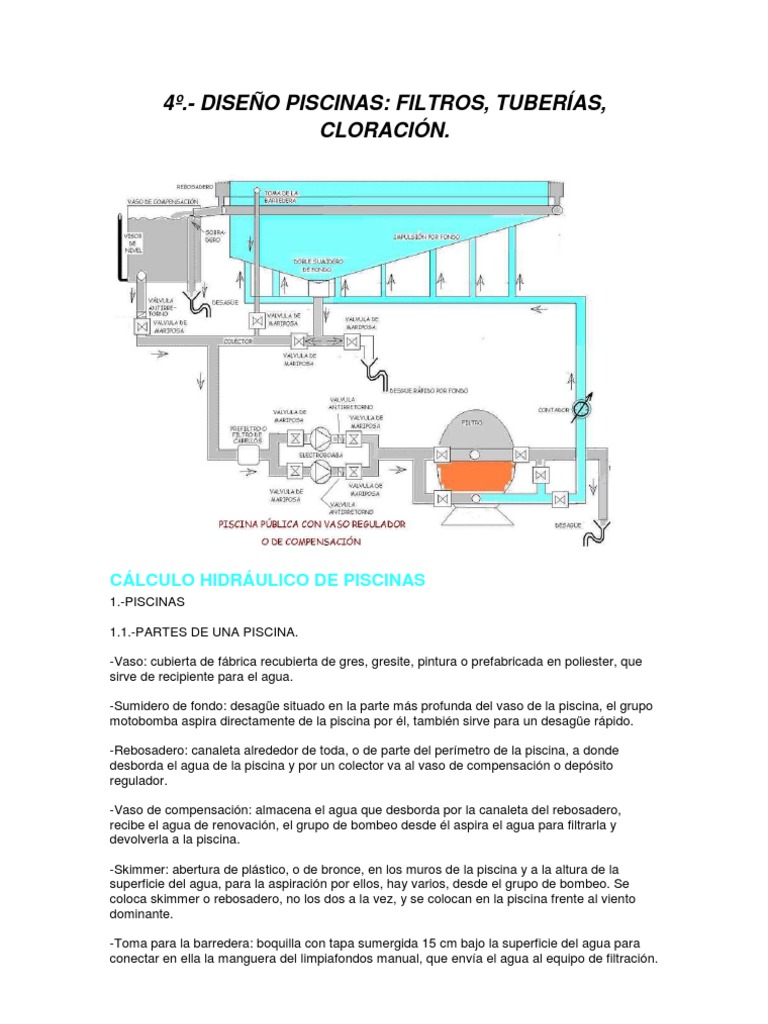 4.- DISEO PISCINAS: FILTROS, TUBERAS, CLORACIN.