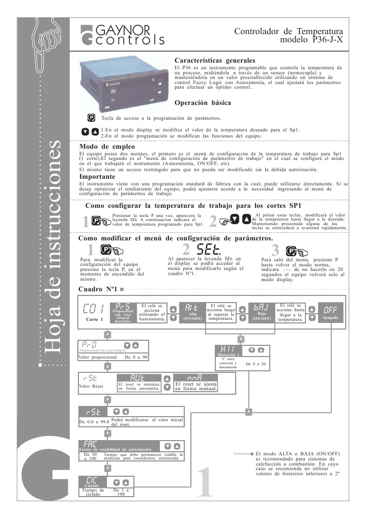 El P36 es un instrumento programable que controla la temperatura de un proceso, midindola a travs de un sensor (termocupla) y mantenindola en un valor preestablecido utilizando un sistema de control Fuzzy Logic con Autosintona, el cual ajustar los parmetros para efectuar un ptimo control..