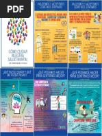 Otro tema a tratar son los mtodos anticonceptivos. A veces, los adolescentes conocen esos mtodos, pero creen que a ellos no les va a pasar. Pero s les puede pasar, por eso es importante insistir mucho en el cuidado y en que no sirve cuidarse un poco o a veces o slo con las personas desconocidas. Para orientarlos, es indispensable que nos informemos bien nosotros los adultos sobre los mtodos anticonceptivos. En el centro de salud ms cercano podrn asesorarnos y tambin a los chicos y chicas, si van a consultar.