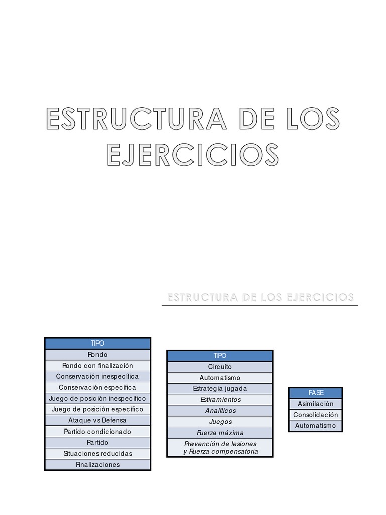 Ataque vs Defensa Partido condicionado Partido P tid Situaciones reducidas Finalizaciones TIPO Circuito Automatismo Estrategia jugada Estiramientos Analticos A lti Juegos Fuerza mxima Prevencin de lesiones y Fuerza compensatoria FASE Asimilacin Consolidacin Automatismo