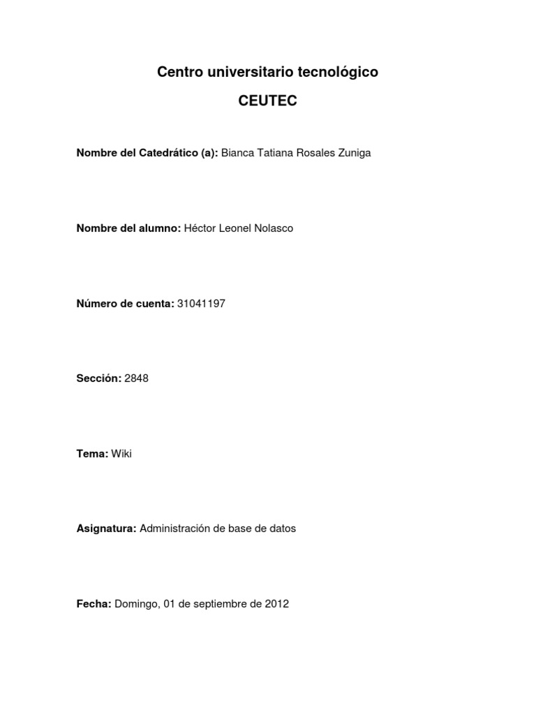 Nombre del Catedrtico (a): Bianca Tatiana Rosales Zuniga