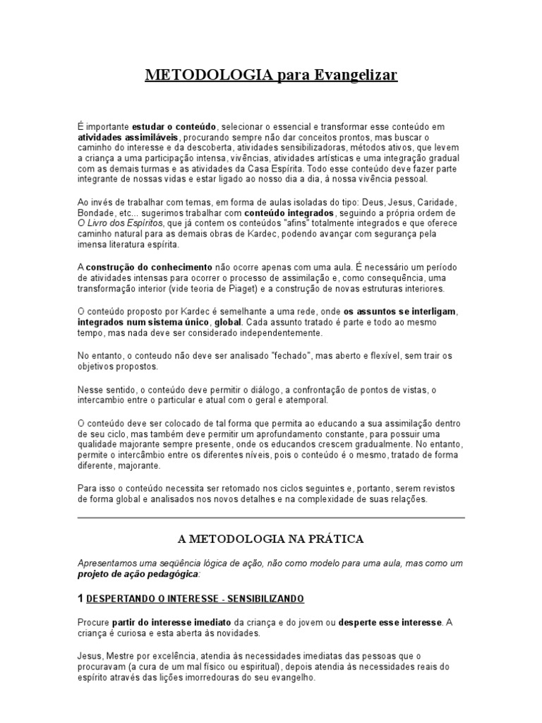 vida, para depois demonstrar (levar a criança a concluir) que a Doutrina Espírita tem as