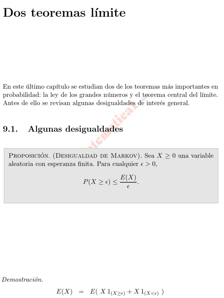Ahora demostraremos una version de la desigualdad de Chebyshev un poco