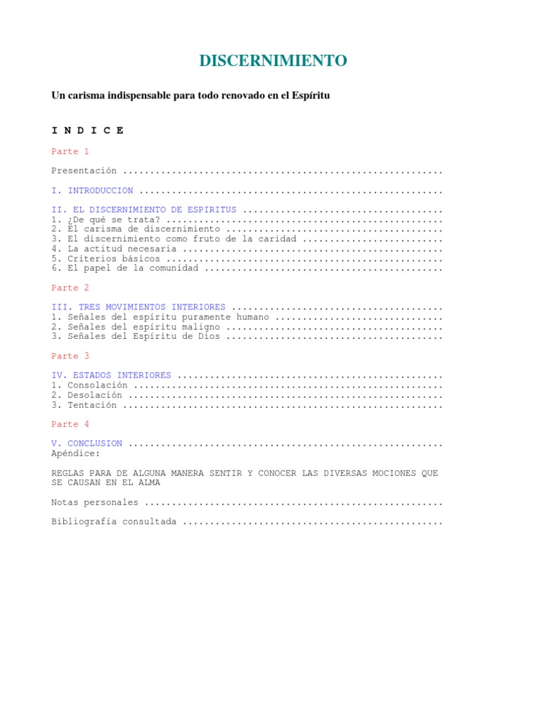 II. EL DISCERNIMIENTO DE ESPIRITUS .....................................
