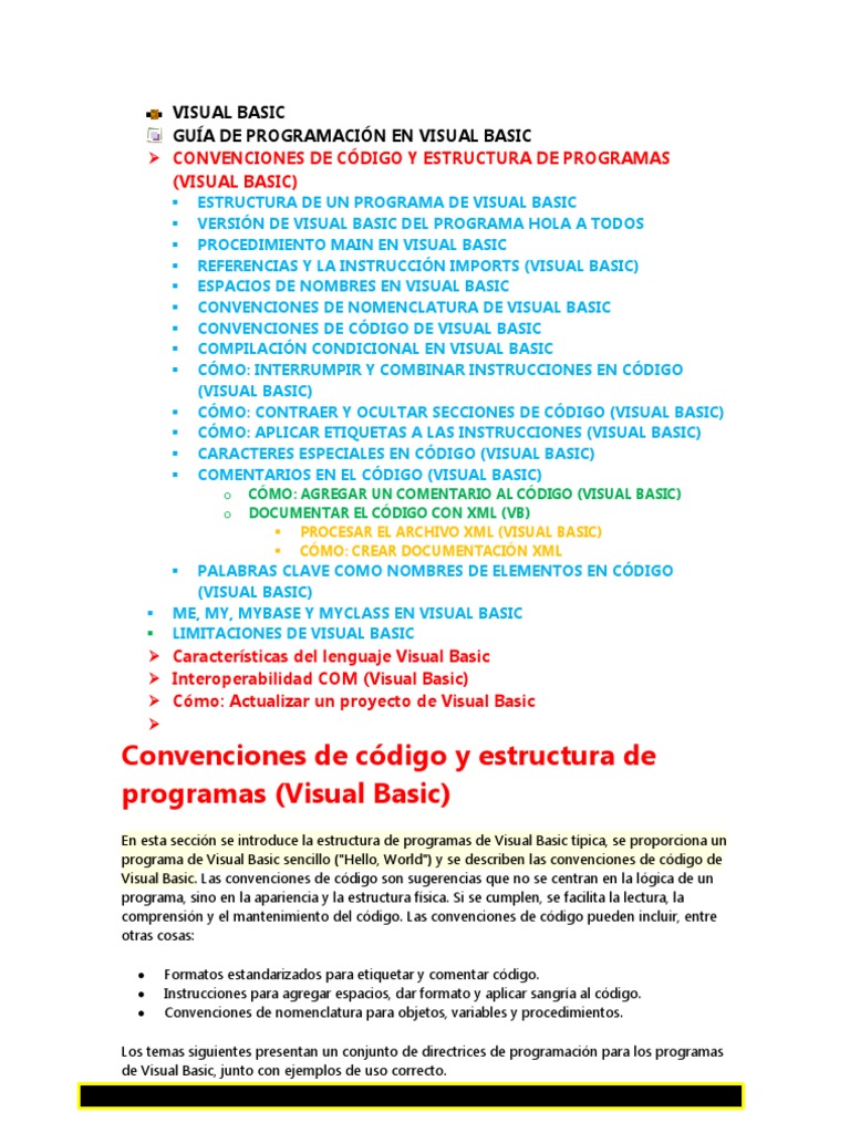ESTRUCTURA DE UN PROGRAMA DE VISUAL BASIC VERSIN DE VISUAL BASIC DEL PROGRAMA HOLA A TODOS PROCEDIMIENTO MAIN EN VISUAL BASIC REFERENCIAS Y LA INSTRUCCIN IMPORTS (VISUAL BASIC) ESPACIOS DE NOMBRES EN VISUAL BASIC CONVENCIONES DE NOMENCLATURA DE VISUAL BASIC CONVENCIONES DE CDIGO DE VISUAL BASIC COMPILACIN CONDICIONAL EN VISUAL BASIC CMO: INTERRUMPIR Y COMBINAR INSTRUCCIONES EN CDIGO (VISUAL BASIC) CMO: CONTRAER Y OCULTAR SECCIONES DE CDIGO (VISUAL BASIC) CMO: APLICAR ETIQUETAS A LAS INSTRUCCIONES (VISUAL BASIC) CARACTERES ESPECIALES EN CDIGO (VISUAL BASIC) COMENTARIOS EN EL CDIGO (VISUAL BASIC)