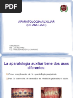 Ortorama Definicin: Dispositivo intrabucal fijo Que permite la expansion de premolares , siendo esto una variedad de la barra palatina Confeccin: Alambre 0.9 mm al estilo de la barra pero con prolongaciones en sus brazos. Van insertados en los tubos palatinos de las bandas que se han colocado en los primeros molares Pueden prolongarse hasta la zona anterior si as lo deseamos de tal modo que expande la zona de premolares y tambin la zona anterior Indicaciones: Expansin en pacientes donde se necesita este recursos para Producir el alineamiento de los dientes Contraindicaciones: No se recomienda su uso en piezas con problemas periodontales y en adultos donde la denticin permanente esta totalmente consolidada Pndulo o distalizador de Hilguers Es una aparato intrabucal a estilo de un placa que tiene la caractersticas de llevar una porcin de acrlicos con tornillos y ganchos de Tma Pendex : Aparato de pndulo con tornillo transversal segn Hilgers Elementos: Lleva un resorte de pndulo con Terminal de 0.8 mm redondo, y apoyos oclusales de alambre 0.7 mm duro elstico Su funcin: Expansin transversal gracias a un tornillo y un distalizador de molar simultnea Descripcin: La tendencia a crear una mordida cruzada debido al radio del resorte de pndulo es compensada con la expansin de la arcada Los apoyos se colocan sobre los premolares. El resorte de pndulo tiene un ansa en el centro del paladar, de all se dirige recto haca los seguros palatinos y termina simple. Las retenciones son colocadas de tal forma que no interfieran con el corte de separacin El tornillo de expansin debe colocarse cercano a la sutura palatina media para poder disear el aparato completo de manera delicada. Los resortes de pndulo son fijados bajo el cuerpo del tornillo y estn localizados distalmente de los molares a ser movidos El aparato Pend-X terminado deber ser pulido con la pieza de mano para que los resortes de pndulo mviles no sean doblados en el motor para pulir. El tornillo transversal se activa regularmente por el ortodoncista para lograr una expansin transversal