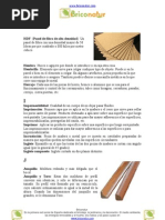 Madera blanda: Madera de conferas que pertenecen al gnero de las gimnospermas Madera de secado irregular: Trmino usado para describir una pieza de madera que presenta diferentes contenidos de humedad. Puede abrirse en el sentido de la veta al ser cortada al hilo Madera dura: Madera procedente de rboles de hojas latifoliadas, y generalmente caducas, que pertenecen al gnero de las angiospermas Madera tarda: Parte de los anillos de crecimiento anual de un rbol que se forma al final del periodo vegetativo Madera temprana: Parte de los anillos de crecimiento anual de un rbol que se forma al comienzo del periodo vegetativo Madera verde: Aquella madera recin cortada que no ha sido todava secada MDF: (Panel de fibra/densidad mediana) Tipo de ncleo compuesto principalmente de fibras combinadas con una resina sinttica u otro sistema de pegamento pegado con calor y presin. Tambin se le llama DM o tablero de fibra de densidad media. Est fabricado a partir de elementos fibrosos bsicos de madera prensados en seco. Se utiliza como aglutinante un adhesivo de resina sinttica. Presenta una estructura uniforme y homognea y una textura fina que permite que sus dos caras y sus cantos tengan un acabado perfecto. Se trabaja prcticamente igual que la madera maciza, pudindose fresar y tallar incluso los cantos. La estabilidad dimensional, al contrario que la madera maciza, es ptima, pero su peso es muy elevado. Constituye una base excelente para las chapas de madera. Es perfecto para lacar o pintar. Tambin se puede barnizar. Se encola (con cola blanca) fcilmente y sin problemas. Es comercializado en grosores desde 2,5 mm a 4 cm o ms. La medida del tablero es de 244 x 122 cm. Suele ser de color marrn medio-oscuro y es un tablero barato. Recomendable para construir todo tipo de muebles (funcionales o artsticos) en los que el peso no suponga ningn problema. Son una base ptima para lacar. Excelente como tapas de mesas y bancos de trabajo. Se puede utilizar