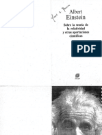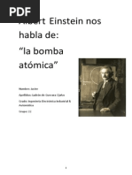 matemtico Julio Rey Pastor, o las que realiz a Argentina, Uruguay y Brasil en 1925, eran un acontecimiento; le seguan fotgrafos y periodistas. El pacifismo y el sionismo fueron los dos movimientos sociales que recibieron todo su apoyo. Durante la I Guerra Mundial, Einstein fue uno de los pocos acadmicos alemanes que condenaron pblicamente la participacin de Alemania en el conflicto. Despus de la guerra sigui con sus actividades pacifistas y sionistas, por lo que fue blanco de los ataques de grupos antisionistas y de derechas alemanes. Sus teoras llegaron a ser ridiculizadas en pblico, especialmente la de la relatividad. Cuando Hitler lleg al poder en 1933, Einstein abandon Alemania y emigr a Estados Unidos, donde ocup un puesto en el Instituto de Estudios Superiores en Princeton, Nueva Jersey. Sigui con sus actividades en favor del sionismo pero abandon su postura pacifista anterior a la vista de la amenaza que supona para la humanidad el rgimen nazi en Alemania. En 1939 Einstein particip junto con otros fsicos en la redaccin de una carta dirigida al presidente Franklin D. Roosevelt en la que se peda la creacin de un programa de investigacin sobre las reacciones en cadena. La carta, que slo iba firmada por Einstein, consigui acelerar la fabricacin de la bomba atmica, en la que l no particip ni supo de su finalizacin. En 1945, cuando ya era evidente la existencia de la bomba, Einstein volvi a escribir al presidente para intentar disuadirlo de utilizar el arma nuclear. Despus de la guerra, Einstein se convirti en activista del desarme internacional y del gobierno mundial, y sigui contribuyendo a la causa del sionismo, pero declin una oferta de los lderes del Estado de Israel para ocupar el cargo de presidente. A finales de la dcada de 1940 y principios de la de 1950, defendi en Estados Unidos la necesidad de que los intelectuales del pas hicieran todo lo posible para mantener la libertad poltica. Einstein muri el 18 de abril de 1955 en Princeton. Los esfuerzos de Einstein en apoyo de causas sociales fueron a menudo percibidos como poco realistas. Sus propuestas nacan de razonamientos cuidadosamente elaborados. Al igual que sus teoras, eran fruto de una asombrosa intuicin basada en cuidadosas y astutas valoraciones y en la observacin. A pesar de su actividad en favor de causas polticas y sociales, la ciencia siempre ocup el primer lugar en su vida, pues, como sola decir, slo el descubrimiento de la naturaleza del Universo tiene un sentido duradero. Entre sus obras se encuentran La relatividad: la teora especial y restringida (1916); Sobre el sionismo (1931); Los constructores del Universo (1932); Por qu la guerra? (1933), con Sigmund Freud; El mundo como yo lo veo (1934); La evolucin de la Fsica (1938) con el fsico polaco Leopold Infeld, y En mis ltimos aos (1950). La coleccin de los artculos de Einstein comenz a publicarse en 1987 en varios volmenes. .