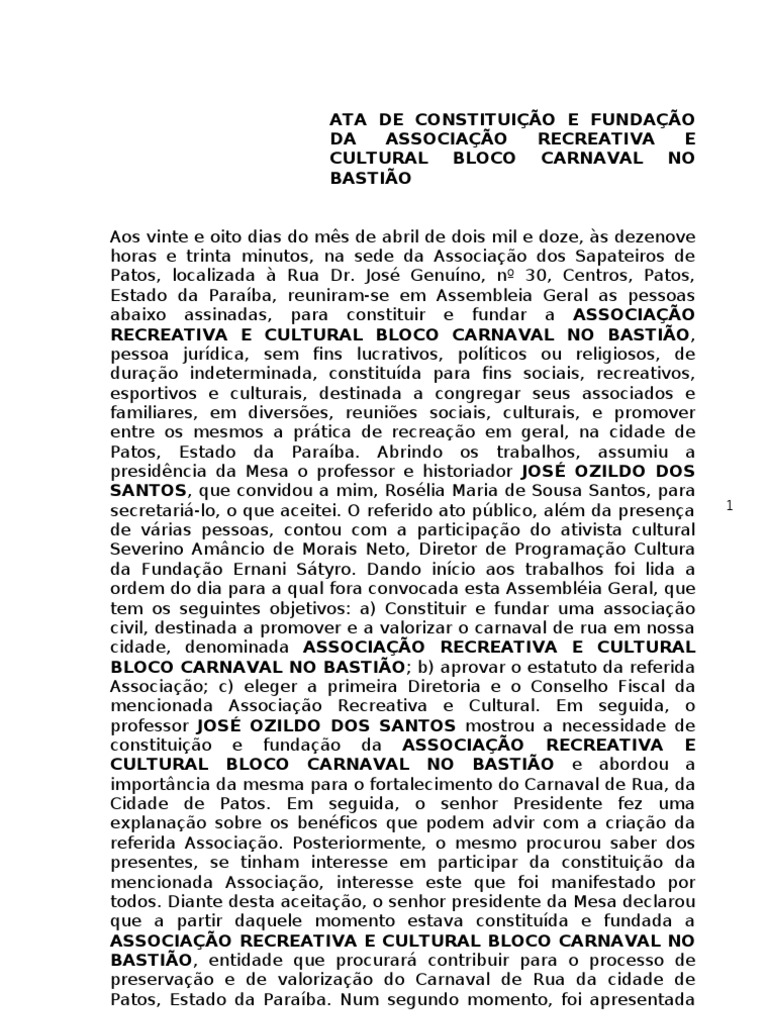 constituio e fundao da ASSOCIAO RECREATIVA E