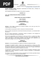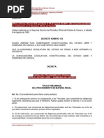 P.O. No. 6 del 6 DE FEBRERO DEL 2010 Decreto 1557 ARTCULO NICO.- Se ADICIONA el artculo 122 BIS del Cdigo Penal para el Estado Libre y Soberano de Oaxaca. TRANSITORIO NICO.- El presente Decreto entrar en vigor al da siguiente de su publicacin en el Peridico Oficial del Gobierno del Estado. P.O. No. 40 del 2 DE OCTUBRE DEL 2010 Decreto 2005 ARTCULO NICO.- Se REFORMAN los artculos 119; 121; 122; 125; 126; 208, fraccin XL y 383. Se ADICIONAN los artculos 217 Bis-E. Se DEROGAN los artculos 123; 129 y 135 del Cdigo Penal para el Estado Libre y Soberano de Oaxaca. TRANSITORIO: NICO.- El presente Decreto entrar en vigor a partir del da siguiente de su publicacin en el Peridico Oficial del Gobierno del Estado. DECRETO No. 388 PUBLICADO EN EL P.O. EXTRA DEL 7 DE ABRIL DEL 2011 ARTCULO NICO.- Se ADICIONA un tercer prrafo al artculo 378 y se REFORMA el artculo 379 del Cdigo Penal para el Estado Libre y Soberano de Oaxaca. TRANSITORIO NICO.- El presente decreto entrar en vigor al da siguiente de su publicacin en el Peridico Oficial del Gobierno del Estado. DECRETO No. 511 APROBADO EL 15 DE JUNIO DEL 2011 ARTCULO PRIMERO.- Se REFORMA el artculo 17 primer prrafo de la Constitucin Poltica del Estado Libre y Soberano de Oaxaca. ARTCULO SEGUNDO.- Se REFORMAN los artculos 81 segundo prrafo, 87, 93, 97, 102 y 105 fraccin II y segundo prrafo del Cdigo Penal para el Estado Libre y Soberano de Oaxaca.
