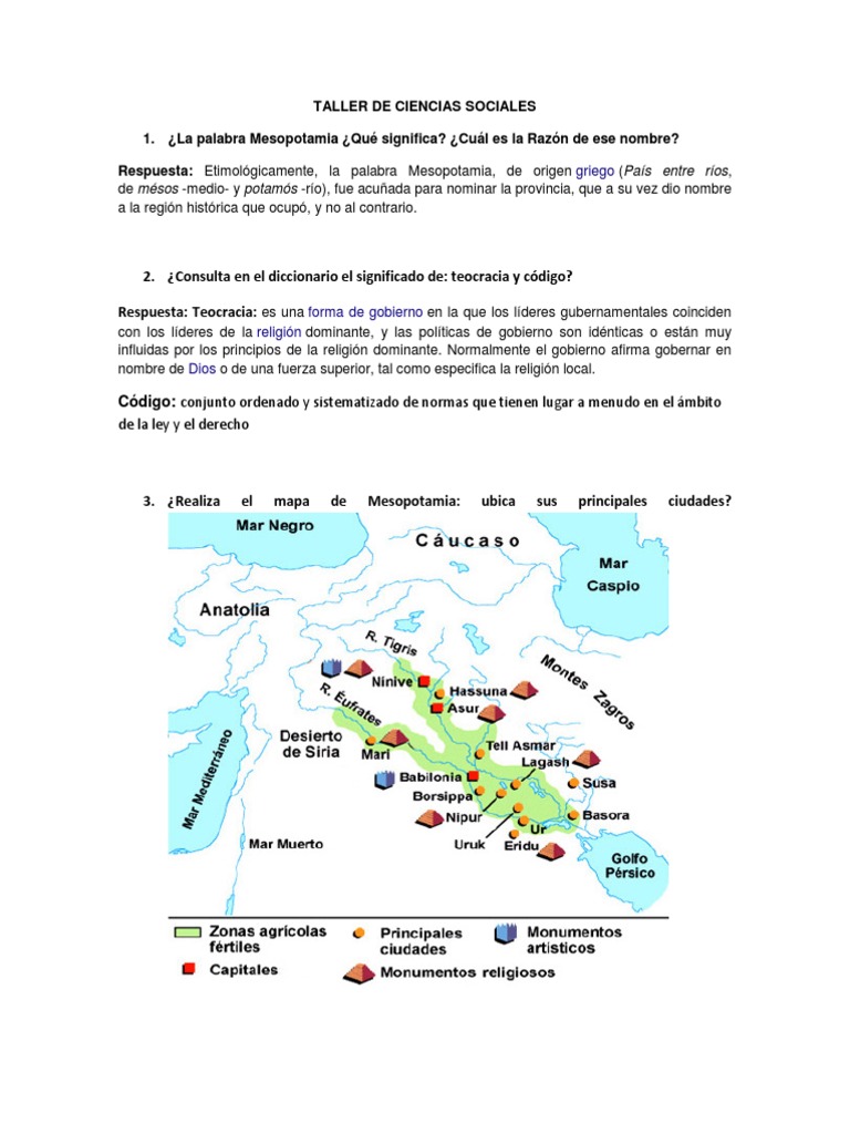 TALLER DE CIENCIAS SOCIALES 1. La palabra Mesopotamia Qu significa? Cul es la Razn de ese nombre?