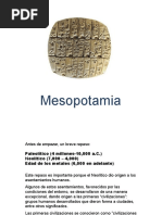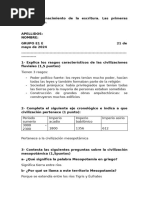 4. Describe las bondades de Mesopotamia? Respuesta: La Agricultura: la llanura formada por los ros Tigris y Eufrates, era una tierra frtil, gracias a las bondades de la naturaleza y al trabajo colectivo y organizado de los sumerios en obras de regado. De esta forma, la principal actividad econmica era la agricultura, orientada especialmente al cultivo de cereales como cebada, ssamo, trigo y centeno; legumbres y frutas. La ganadera: era una actividad complementaria con la agricultura. Eran caractersticos de la zona los rebaos de cabras, cerdos y ovejas. La artesana: tambin los sumerios demostraron ser hbiles para realizar labores artesanales como tejidos, curtiembre de pieles, elaboracin de objetos de madera, metal y cermica. El Comercio: los sumerios mantenan un activo intercambio con otras culturas como Egipto y la India, para abastecerse de una serie de materias primas que no abundaban o existan en la zona. stas eran, por ejemplo, utilizadas en los talleres artesanales. 5. Realiza un breve comentario acerca de los smeros y los acadios? Respuesta: Los smeros: Hacia el 4000 a.c., algunos pueblos de agricultores procedentes de Turkestan ocuparon las tierras bajas de la Mesopotamia; estos grupos, los Smeros, dieron lugar a la primera gran cultura de la regin. Los Smeros construyeron los primeros templos y palacios de ladrillo, por lo que este material caracteriz la arquitectura de Mesopotamia. Fueron los inventores de la escritura cuneiforme debido a la necesidad de registrar sus negociaciones comerciales con otras regiones distantes, pero no se sabe qu lengua hablaban. Hubo grandes artesanos sobre todo en el trabajo de los metales. Los sumerios hicieron sellos cilndricos con diseos decorativos para identificar sus tablillas de arcilla, cermica y ladrillos. Los acadios: Hacia el 3000 a.c., uno de los primeros grupos semitas, el de los acadios, lleg a Mesopotamia para situarse en la parte norte de Caldea, fund ciudades estados como Agadi, Mari, Kix y Lagax, donde desarrollo su propia cultura. Al poco tiempo entraron en pugna con los Smeros, con los que se alternaron el dominio de la regin hasta que al final lograron imponerse.