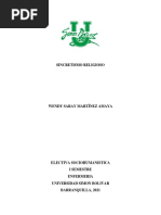 Conclusiones Comenzamos talvez con la idea de que hablar de sincretismo es hablar de otros que tienen poca consideracin para con la esencia de la fe cristiana. Podemos notar que el concepto de sincretismo en el campo de los fenmenos religiosos se abre al debate conceptual y ultrapasa aquella definicn donde no se reconocia la alteridad de los sujetos y grupos en su proceso interrelacional, as concluye Isidoro, Se puede incurrir a una grave deficiencia o negligencia al definir sincretismo como simbiosis, mixtura o fusiones, promiscuidad e inter fuso al atribuir esa definicin de sincretismo al conjunto de experiencias socioculturales y religiosas que se integran, no excento de conflictos, pues surge la necesidad de resolver esos conflictos socio-culturales buscando una nueva fisionoma para ese proceso, a partir de elementos hegemnicos que puedan neutralizar la alteridad e identidad de los sujetos que se intregran. Sincretismo es un proceso que se propone resolver una situacin de conflicto cultural9 El sincretismo se mueve en los mbitos de las ciencias religiosas, y lo cierto es que una cuestin importante para la teologa sistemtica es lo concerniente a la teologa de las religiones, es decir los valores y las doctrinas. El sincretismo ayuda a entender las relaciones de las ciencias de la religin con la teologa y por otro lado el sincretismo pretende contribuir para el conocimiento de un fenmeno religioso que es parte de la religiosidad colectiva. La multiformidad de las experiencias religiosas nos llaman la atencin a otros factores que son inherentes a la experiencia humana, esta es la identidad y la alteridad en los procesos de interaccin y cambios socio-culturales y religiosas. Asi que para definir el trmino de sincretismo a partir de las experiencias de los grupos sociales es necesario la perspectiva de identidad y alteridad para definir conceptos, y ver los procesos de interrelacin. El concepto de sincretismo no solo se aplica en el campo religioso-cultural, sino tambin en el arte, la filosofa y ciencias, muchas veces de manera diversificada.