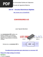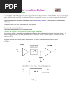 Un Convertidor analgico-digital A/D, (en inges Analog-to digital converter ) es un o dispositivo electrnico capaz de convertir una entrada analgica de voltaje en un valor o o binario o una palabra codicada numricamente, donde en general la seal analgica, e n o que var de forma continua en el tiempo, se conecta a la entrada del dispositivo y se a somete a un muestreo a una velocidad ja, obtenindose as una seal digital a la salida e n del mismo. Aunque existe gran diversidad de tipos o familias de convertidores A/D, todos ellos han de cumplir las tres fases de la conversin analgica-digital: o o