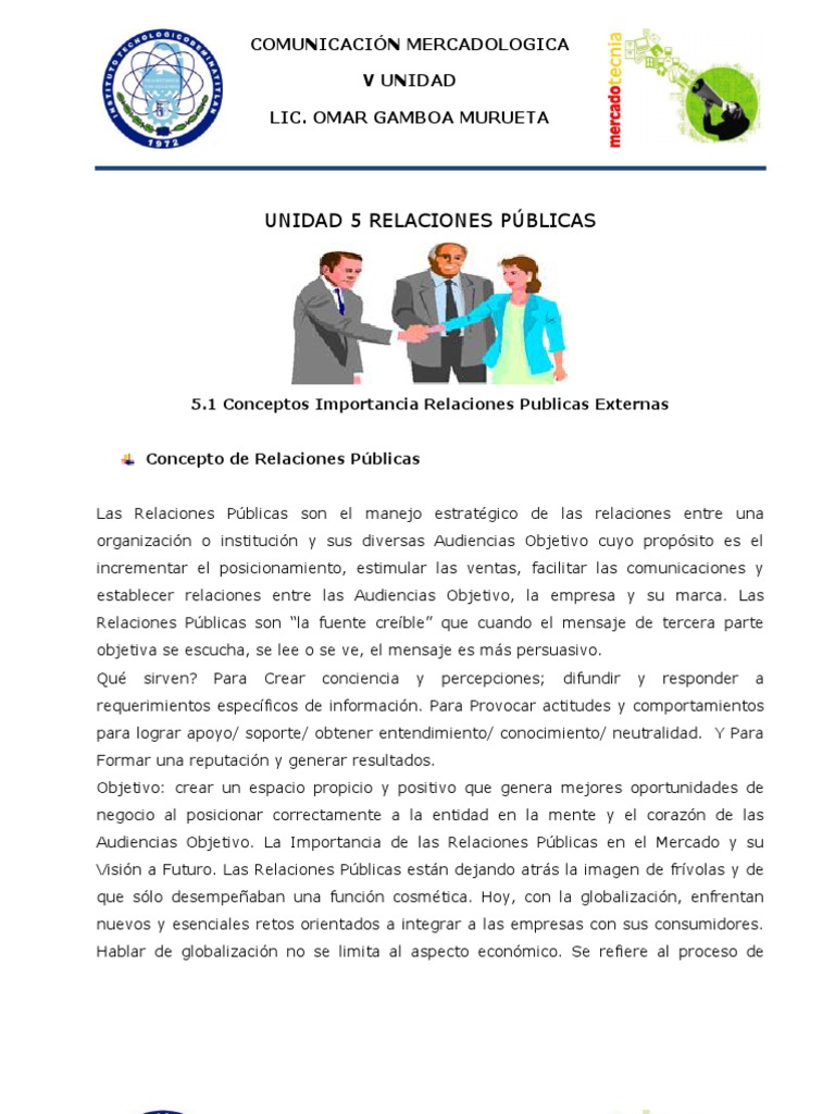 COMUNICACIN MERCADOLOGICA V UNIDAD LIC. OMAR GAMBOA MURUETA