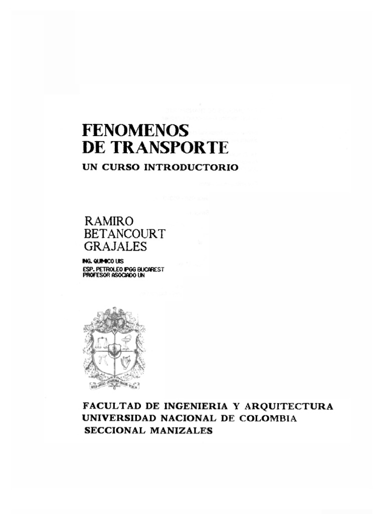 Fenomenos Transporte Ramiro Betancourt Grajales - Libro Completo